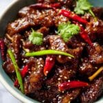 Crispy Sweet Chilli Beef is a flavorful Asian-inspired dish featuring tender beef strips coated in cornflour, fried to a golden crisp, and tossed in a sticky, sweet, and mildly spicy chili sauce. Garnished with fresh coriander and sesame seeds, this dish is perfect for a satisfying weeknight dinner or entertaining guests.