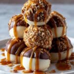 Delight in these Salted Caramel Pretzel Cheesecake Balls, a perfect blend of creamy cheesecake, sweet salted caramel, and crunchy pretzels. These bite-sized treats are easy to make, chilled to set, and optionally coated with white or milk chocolate for an irresistible dessert that balances sweet and salty flavors.