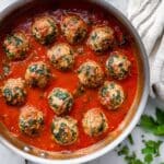 These Spinach Feta Baked Turkey Meatballs combine lean turkey with nutritious spinach and tangy feta for a flavorful, healthy meal. Baked in marinara sauce, they’re juicy and tender—perfect for a weeknight dinner or meal prep.