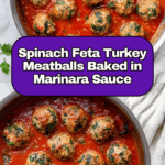These Spinach Feta Baked Turkey Meatballs are a healthy and flavorful twist on classic meatballs, combining lean ground turkey with nutrient-rich spinach and tangy feta cheese. Baked in marinara sauce, these meatballs are juicy, tender, and perfect for a comforting meal that’s easy to prepare and packed with Mediterranean-inspired flavors.