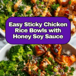 Keywords: Sticky Chicken Rice Bowls, Honey Soy Chicken, Easy Chicken Dinner, Asian Chicken Recipe, Chicken Thighs, Jasmine Rice Bowl