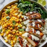 Keywords: Street Corn Chicken Bowl, Mexican Chicken Rice Bowl, Charred Corn, Easy Chicken Dinner, Cilantro Lime Rice Bowl