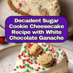 This Sugar Cookie Cheesecake combines the rich, creamy texture of classic cheesecake with the sweet, nostalgic flavor of sugar cookies. Featuring a buttery sugar cookie crust, a luscious cream cheese filling studded with frozen cookie dough balls, and a silky white chocolate ganache topping, this dessert is a festive treat perfect for holiday celebrations or anytime you want a delightful indulgence.