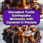 Turtle Earthquake Brownies are a decadent treat that combines rich chocolate brownie with gooey caramel, melted chocolate chips, and crunchy pecans. This indulgent dessert is perfect for chocolate lovers looking for a delightful twist on classic brownies.